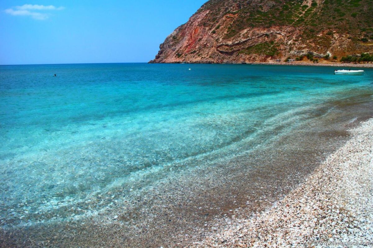 Agia Kyriaki is a beautiful beach located on the southern side of Milos, about 12 km from Plaka village and 8 km from Adamas, the port of the island. Agia Kyriaki distinguishes for the lovely sand and the white pebbles along the waterside. This is among the most beautiful beaches in Milos, for the crystal waters and the wild rocky landscape.