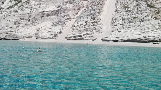 Gerakas is an impressive spot with rocky geological formation. It is located on the southern side of Milos and can be reached only by boat. In fact, many excursion boats that make the tour of the island stop at Gerakas. The water is crystal and people can jump from the boat for a swim. The surrounding landscape is rocky and abrupt.